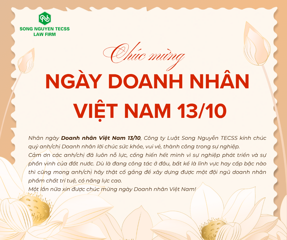 Nhân ngày Doanh nhân Việt Nam, Công ty Luật Song Nguyễn TECSS kính chúc quý anh/chị Doanh nhân lời chúc sức khỏe, vui vẻ, thành công trong sự nghiệp.